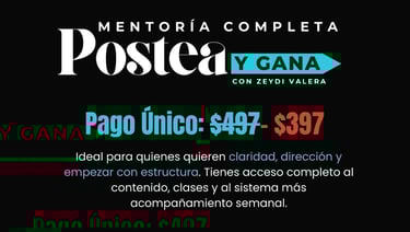 Postea y Gana es un sistema con acompañamiento para convertir tu contenido en ventas reales. Probado por +200 mujeres como tú!