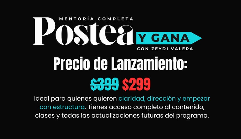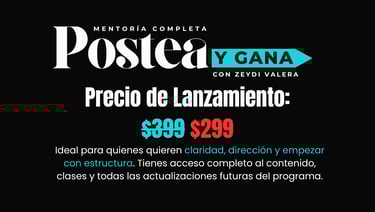 En Postea y Gana te llevo de la mano con un método simple para crear, publicar y monetizar sin miles de seguidores.