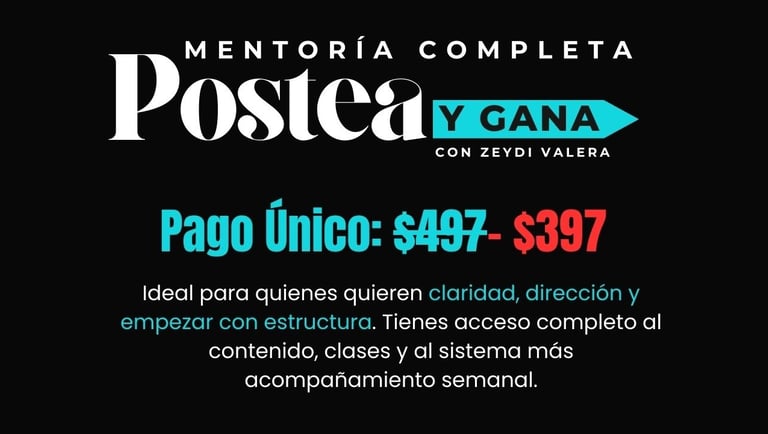 Postea y Gana es un sistema con acompañamiento para convertir tu contenido en ventas reales. Probado por +250 mujeres como tú!